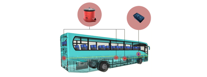 計(jì)案例:江西百路佳新能源6.5米長(zhǎng)客車,內(nèi)有電池艙5個(gè),故需設(shè)計(jì)的保護(hù)區(qū)為5個(gè)保護(hù)區(qū),每個(gè)保護(hù)區(qū)配置1臺(tái)自動(dòng)滅火裝置(型號(hào)QRR0.03GW/SHS-AR23ZF),5個(gè)保護(hù)區(qū)內(nèi)的5臺(tái)裝置通過(guò)總承線束和駕駛員操作盤(pán)上的模塊聯(lián)接。